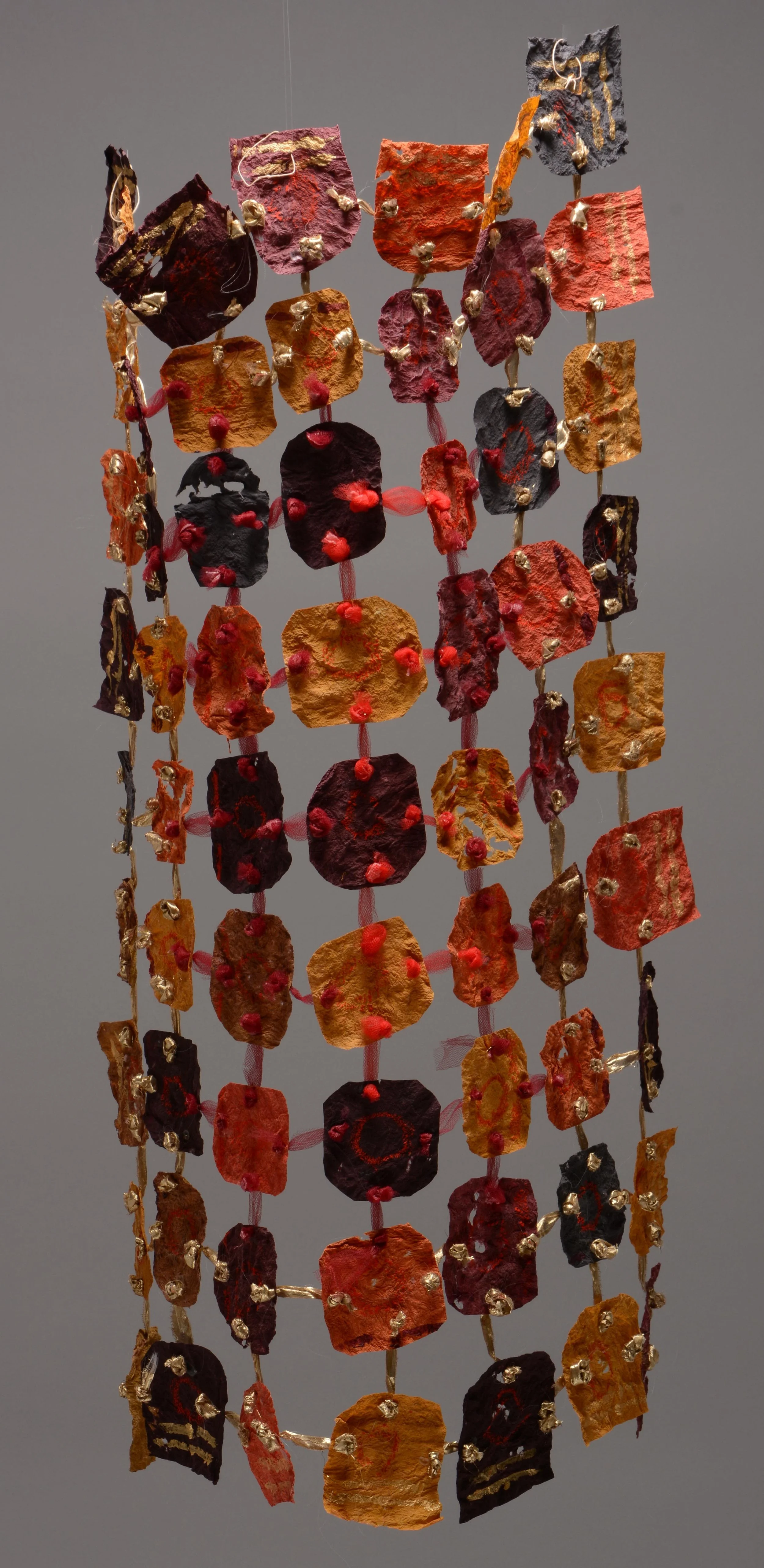 Handmade abaca paper, acrylic paint, plastic mesh